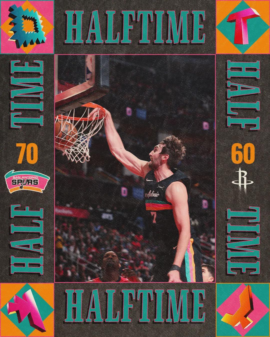 上半场打完,马刺70-60领先火箭10分。尚帕尼21分5板2助、文班亚马12分2板2助;火箭这边,杜兰特、阿门和申京各砍12分。第三节开始,火箭4分钟出现3次失误。尚帕尼继续飙进三分,卡斯尔大风车扣篮2+1,杜兰特跳投止血。