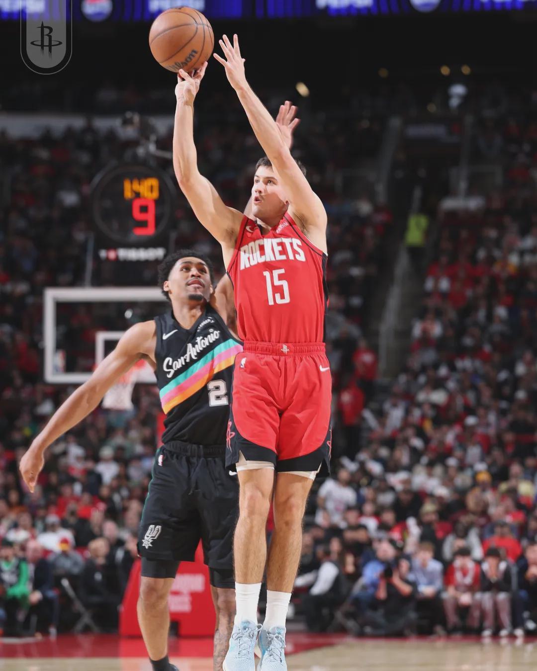 马刺两个新秀迪伦-哈珀和卡特-布莱恩特防守都不错,但外线投射太差了,基本上都被火箭放空。哈珀本赛季三分命中率24.7%,卡布三分命中率23.8%。马刺则是放空阿门-汤普森,阿门本赛季三分命中率只有可怜的19.1%。
