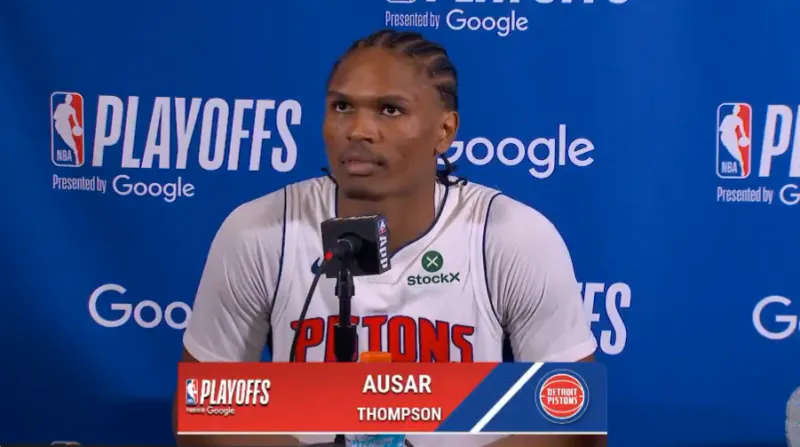 活塞球员奥萨尔-汤普森接受采访,被问到如何让杰伦-杜伦在进攻端更多参与进来。